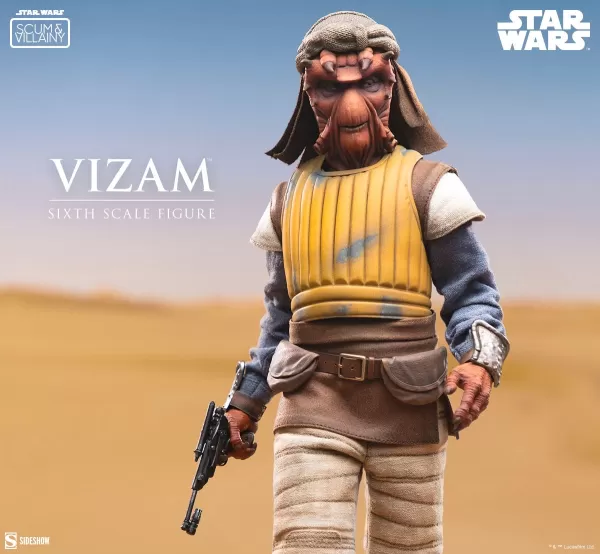 사이드 쇼는 계속 1 : 6의 스케일 수치를 제공하여 뜨거운 장난감의 릴리스를 보완합니다. 그들의 "Scum and Villainy"라인은 덜 알려진 외계인과 생물에 중점을두고 있으며, Bib Fortuna, Klaatu 및 Vizam을 포함한 Jedi의 대가로 Jabba의 궁전의 캐릭터가 등장합니다.