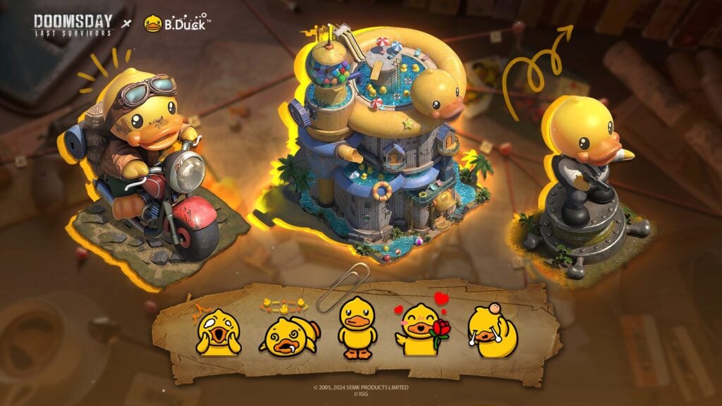 Doomsday: Last Survivors sees you carving out an embattled existence in a world brought to its knees by a zombie outbreak. Not only do you have to keep yourself alive, but you need to command a community of fellow survivors. That means building a shelter, fighting off zombie attackers, forging alliances with other players, taking down human opponents, recruiting heroes, training troops, creating formations, and generally bossing the apocalypse. It’s a brutal existence, but for the next few months B.Duck is set to lift the mood with two waves of in-game events. There are collab merch rewards up for grabs too, including Power banks and sports towels. These will be given away via the in-game lucky draw web page event. You can draw prizes once for free during the event the first time they visit the webpage, and you are also able to earn points to get more draw chances. The first in-game event, Ducky Adventures, is due to run from November 1st till November 30th, consisting of four distinct events, limited-time items, and custom merch. Wave two isn’t set to begin until next January. Vault Adventure lets you participate in events or purchase packs to obtain a B.Duck Key, which in turn will let you draw for prizes. These include resources and B.Duck Coins, which you can trade for items at the Vault Store. B.Duck Diary is a daily login event that allows you to claim a variety of collaboration-exclusive items, including a themed Shelter decoration.
